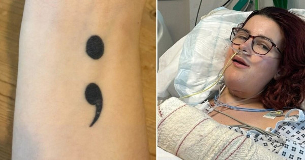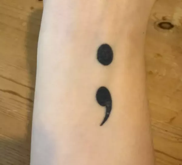 Британка сделала татуировку всего через два дня после своего восемнадцатилетия. Это изображение имеет глубокий смысл, связанный с психическим здоровьем. Точка с запятой символизирует устойчивость тех, кто борется с депрессией."У меня была депрессия и тревожность с двенадцати лет, - поделилась она. - Точка с запятой используется, когда автор хочет закончить предложение, но продолжает"."Человек - это автор, а точка с запятой - его жизнь. Он хотел уйти, но решил остаться".