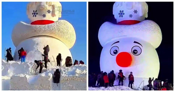 На острове Тайяндао в Харбине людей встречает огромный снеговик высотой 23,8 метра. На его создание ушло несколько дней работы и 5000 кубических метров снега.