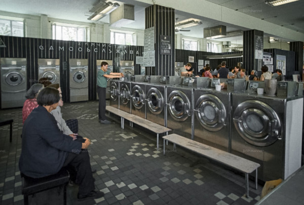 Прачечная самообслуживания и химчистка на Профсоюзной улице в Москве, 1973 год.