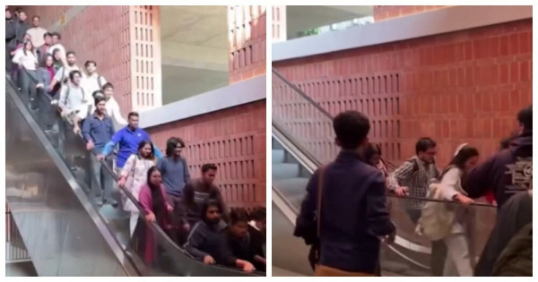 В столичном университете Бангладеш из-за технической неисправности эскалатор резко ускорился во время движения студентов. К счастью, все успели безопасно сойти и остались без травм.
