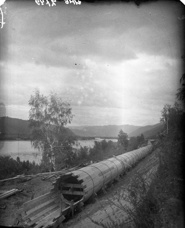 Особо впечатляет факт, что трубы из дерева массово применялись вплоть до середины 20-го века! хоть и были во все времена дорогим удовольствием, в первую очередь из-за высокого мастерства тех людей, которые это строили. Сегодня развеем маленький миф о том, что деревянная труба это удел глубокой древности, признак отсталости и фу-фу-фу.История это безумно старая, в Греции деревянные трубы применялись минимум с 150 г. до нашей эры. Первая крупная централизованная сеть на деревянных трубах появилась в Лондоне уже с 1619 года и никакие другие не использовались ещё 200 лет. В Американском Бостоне (хотя тогда ещё Английском) водопровод из дерева по всем британским канонам проложили уже в 1650-х годах и так он работал 150 лет, аналогично англичане строили и другие свои города в Северной Америке. Первый крупный Российский проект появился в 1807 - это т.н. Пулковский водопровод длиной магистрали 7,5 километров.Кратенько, какие бывают деревянные трубы? Самые два древних и примитивных варианта - это сверленные трубы из цельных стволов дерева и долбленные и соединенные из двух или четырех частей. Именно они появились в незапамятные времена и зачастую становились основой первых систем транспорта воды. Отметим сразу, что до 19-го века основой подачи воды были именно сверленные трубы. В чем главный минус таких труб? - В стыковке! Герметично, качественно и просто закрепить торцы труб, да ещё чтобы они достаточно долго прожили практически невозможно. Основным методом была "стыковка в конус", когда концы труб вытачивались и входили последовательно в друг друга.Но всё описанное выше - это про маленькие проекты, так мелочь, в то же время в гидротехнике деревянные трубы достигли своего технологического предела и стали поистине интереснейшей конструкцией. . В 1930-х Годах в Советском Казахстане был проложен гидротехнический трубопровод для Ульбинской ГЭС в городе Риддер. Это было поистине эпическое сооружение, полная протяженность - 10 километров, диаметр 325 сантиметров, 3,25 метра! и из этих 10 километров 9,4 км были выполнены из ... барабанная дробь.... дерева! По заявлению И.В. Бердуса (одного из пионеров советской гидротехники Казахстана) система держала давление в 15,5 атмосфер в ряде точек сети!!! Так как деревьев такого диаметра найти практически не возможно, то и конструкции таких труб тоже выполнялись непросто. В сути своей они собирались как гигантская протяженная бочка, состоящая из чередующихся досок, уложенных в шахматном порядке. Таким образом весь трубопровод являлся монолитным конструктором без отдельных участков и секций. Эта технология появилась в 19-м веке и стала всемирно распространенной, особенно на североамериканском континенте. Дальше пришло полное доминирование чугуна и стали, вследствие развития металлургии и эра дерева в системах подачи воды окончательно завершилась.