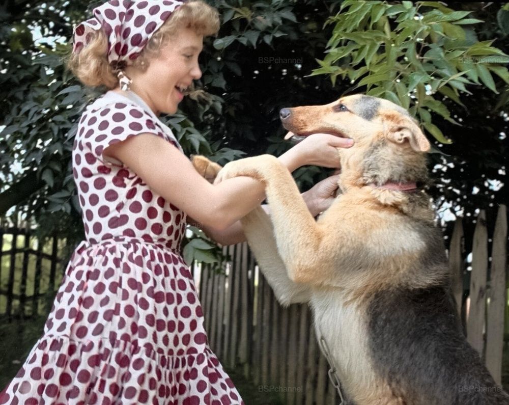 Киноактриса Надежда Румянцева с собакой, 1958 год.