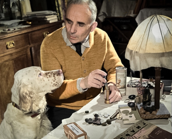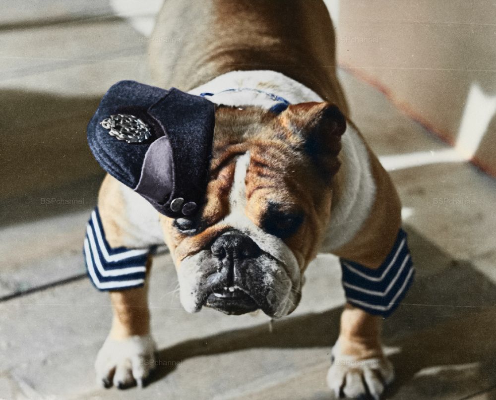 Британский бульдог в форме Королевских ВВС, на студии RAF Iver Heath, Pinewood Studios, Бакингемшир, 1943 год.