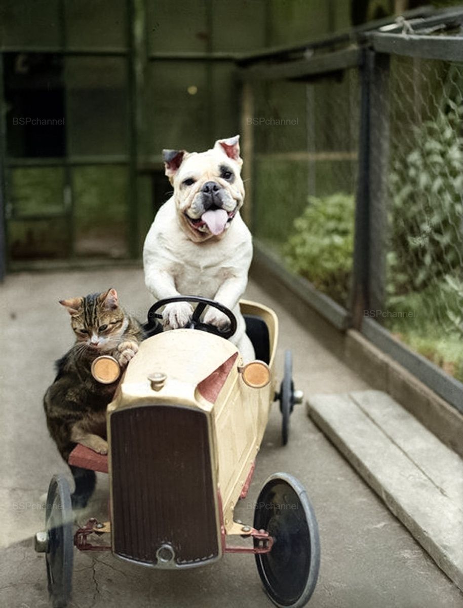 Встречайте подборку редких архивных снимков столетней давности и ближе к нашим дням, на которых хвостатые и пушистые делают то, что у них выходит лучше всего: заставляют нас смеяться, и забывать обо всём на свете. Все фотографии в подборке были раскрашены, приятного просмотра!