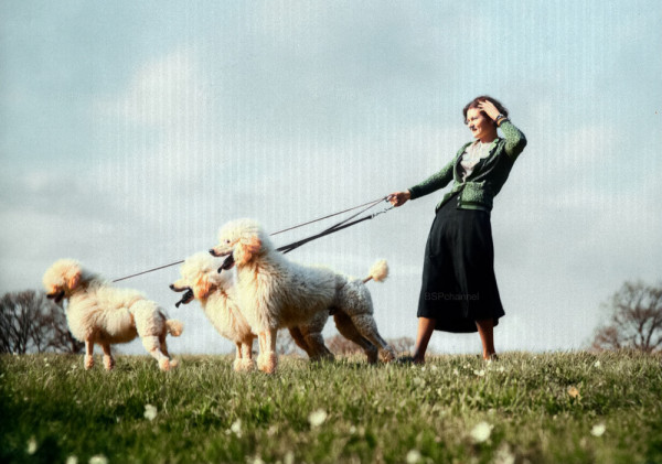 Дрессировка пуделей в питомнике миссис Бойдс Пайперкрофт в Натерсте, Сассекс. Англия, 1934 год.