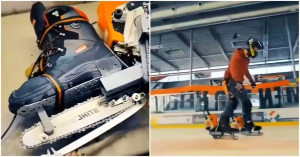 Мужчина создал коньки-бензопилы