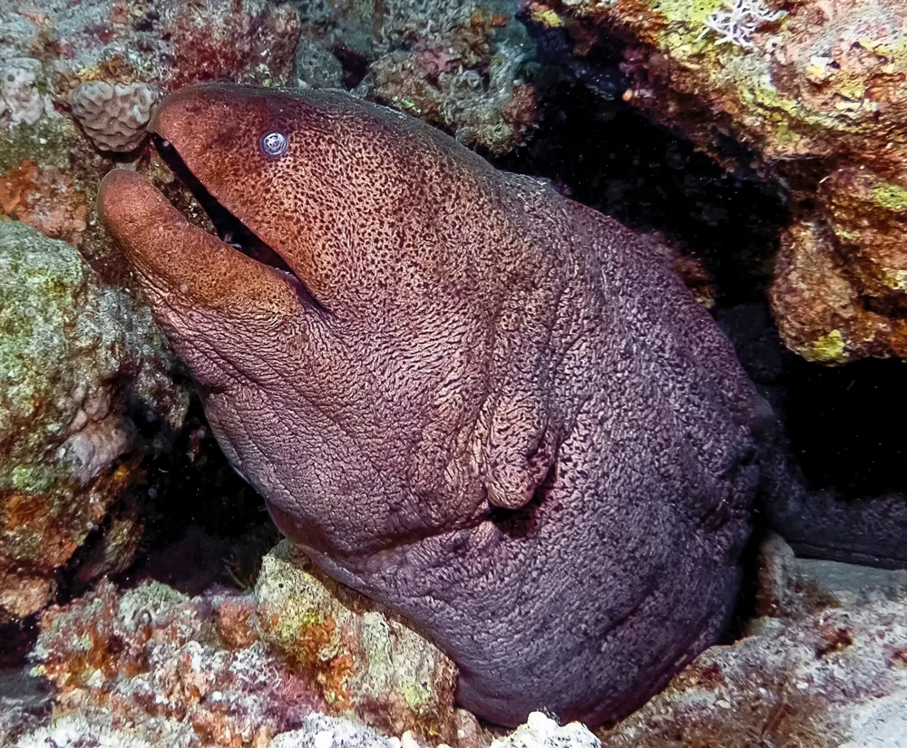 Представьте себе подводную змею толщиной с бедро взрослого мужчины. Она не плюётся ядом, но токсична изнутри. Её пасть полна острых загнутых клыков. И рот у неё не один, их два! Представили? А рыбакам тропических морей и представлять не надо. Они встречают этого монстра регулярно. Эта чудо-юдо рыба из сказки-страшилки - гигантская мурена.