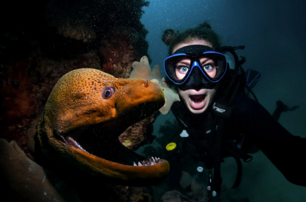 Кажется очевидным, что человек и мурена, как дельфин с русалкой - совсем не пара. Враги навеки? Как ни удивительно, при всей агрессивности к добыче, к человеку мурена практически равнодушна. Она сама всячески избегает встречи с нами. Нападает в крайних случаях, защищая логово. Или сослепу. При совершенном обонянии зрение у мурен так себе. Рыба запросто может перепутать руку, протягивающую пищу, с этой самой пищей.