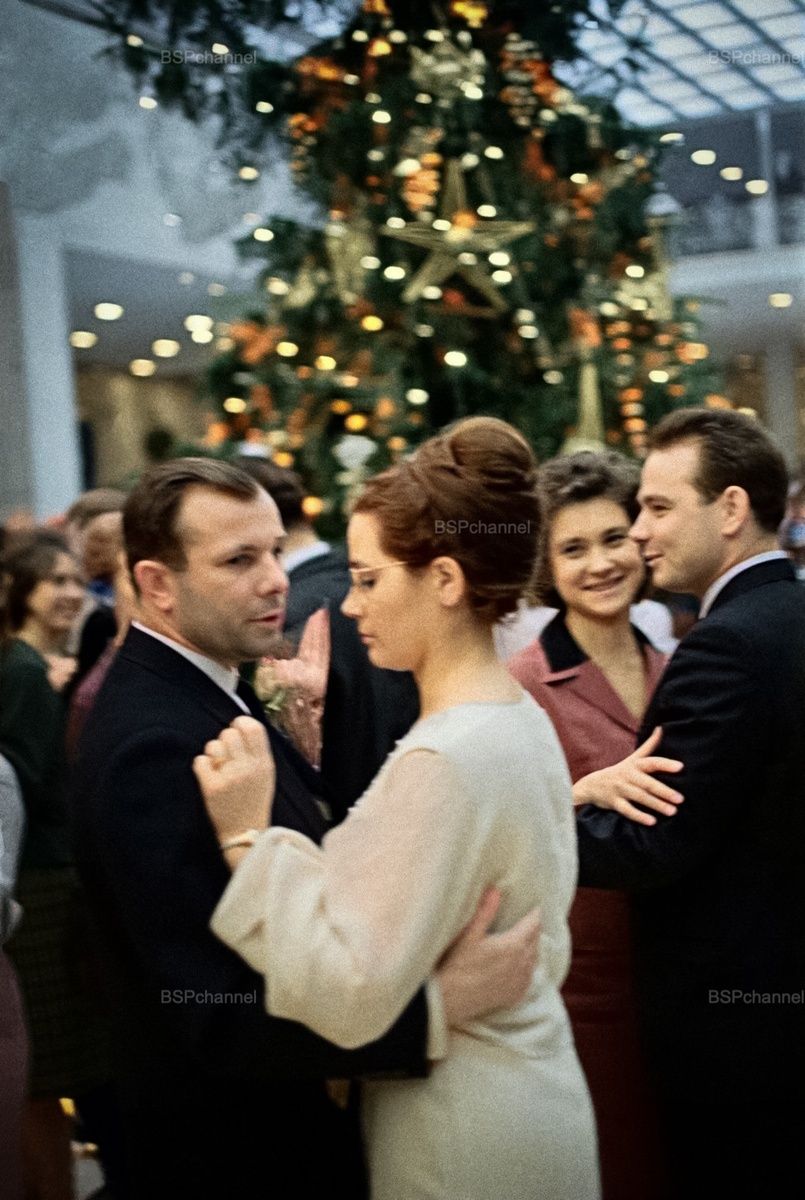 Летчик-космонавт СССР Юрий Гагарин с супругой Валентиной на Новогоднем балу в Кремлевском Дворце, 1965 год.