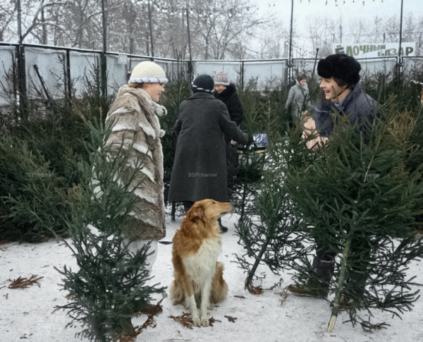 Москвичи выбирают ёлки на ёлочном базаре в преддверии Нового года, 1987 год.