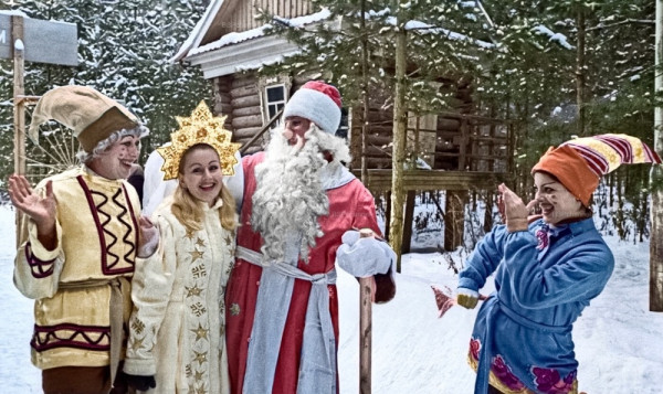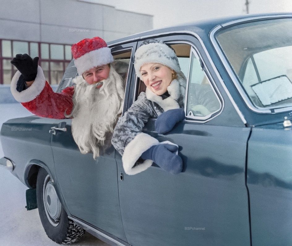 Дед Мороз и Снегурочка в "Волге", 1984 год.