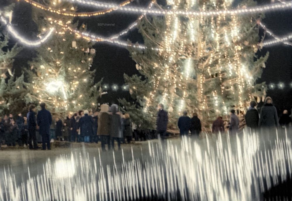 Новогодняя ёлка, украшенная иллюминацией. Москва, 1968 год.