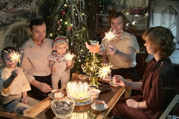 Семья Куковякиных из города Кемерово во время встречи Нового года, 1987 год.