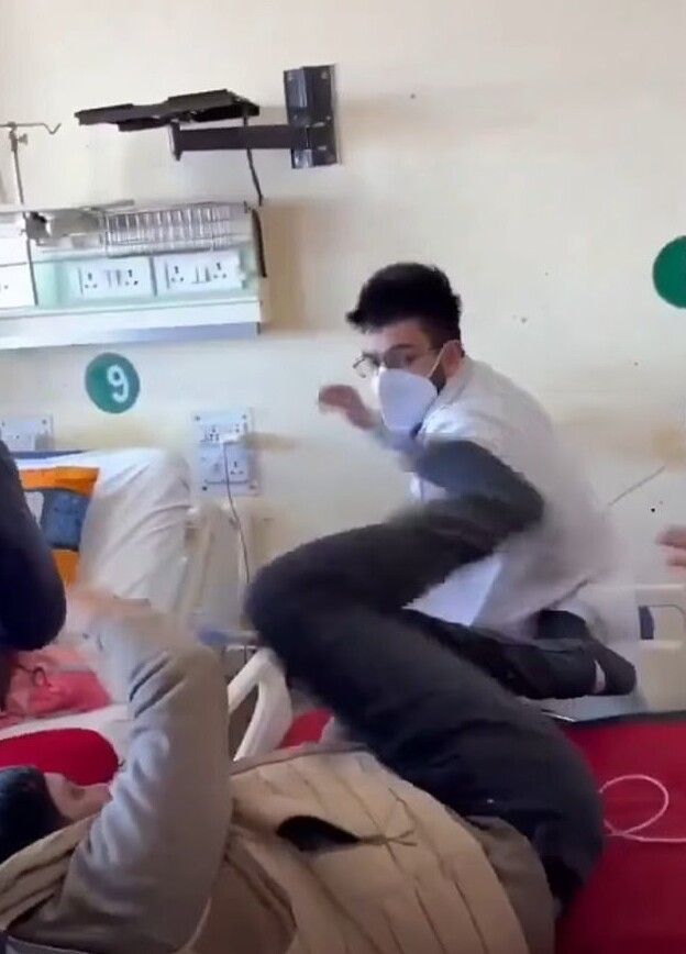На видео доктор бьёт пациента, а тот пытается защититься.После инцидента у больницы собралась толпа, требующая наказать врача. Администрация медицинского учреждения назначила комиссию из трёх человек для расследования.Главный врач Рахул Рао сообщил, что комиссия скоро представит отчёт, кроме того, на врача подано заявление в полицию.