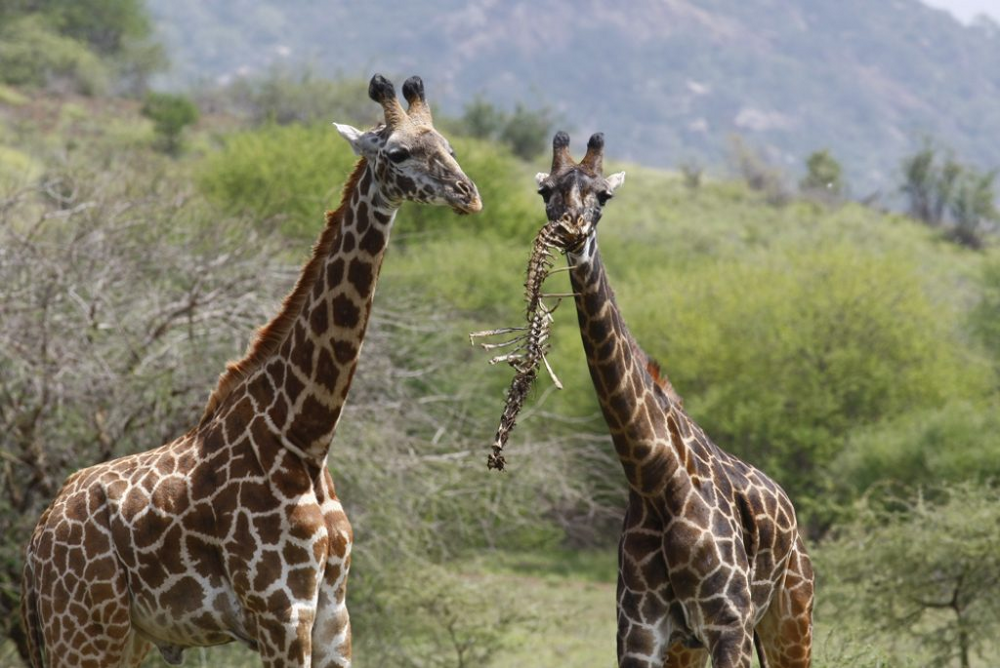 Вообще остеофагия встречается и у других травоядных: оленей, коров, коз - но у жирафов она выглядит особенно эффектно. Высокое изящное животное, которое аккуратно объедает листья акаций, внезапно копается в чужих останках, меланхолично перемывая косточки в самом прямом смысле слова.