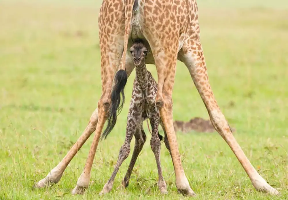 Факт 3. Жирафы начинают жизнь с падения с двух метровРоды у жирафов происходят стоя. Когда телёнок рождается, он падает с высоты около двух метров, ударяясь о землю. Это выглядит жёстко, но именно этот удар помогает разорвать пуповину и стимулировать первое дыхание. Как шлепок по попке младенца.