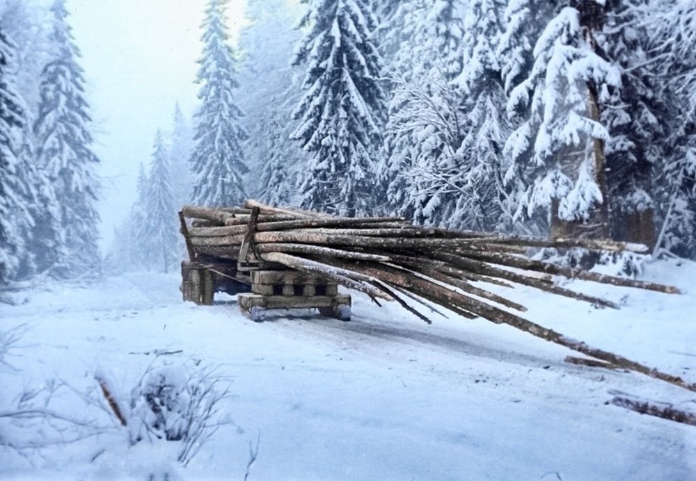 Вывоз леса. Самковский леспромхоз. Пермская обл., Коми-Пермяцкий округ, Кудымкарский р-н, 1959 год.