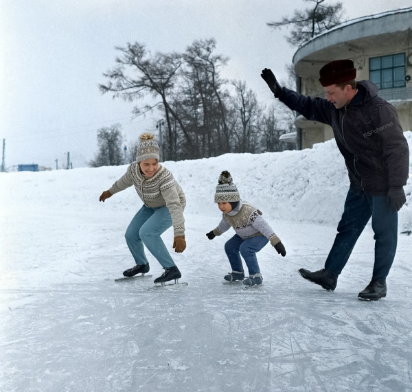 Семья знаменитых конькобежцев Стениных на стадионе. Свердловск, 1966 год.