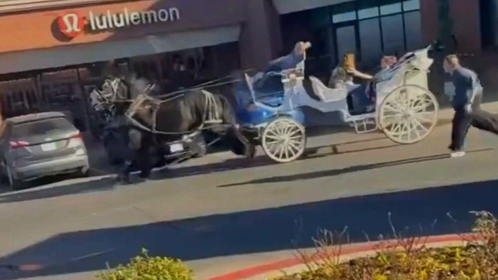 Женщина, управлявшая повозкой, не успела вовремя среагировать - лошади задели припаркованный на парковке автомобиль. В результате она потеряла управление, и повозка разбилась.