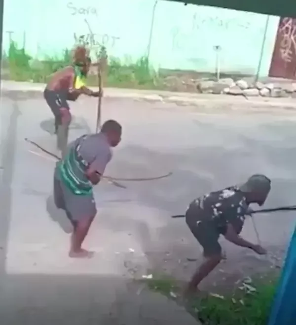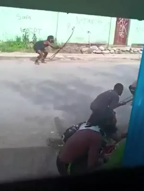 В Папуа - Новой Гвинее враждующие племена устроили хаос на оживлённой улице. Десятки мужчин с луками, стрелами и мачете вступили в бой.
