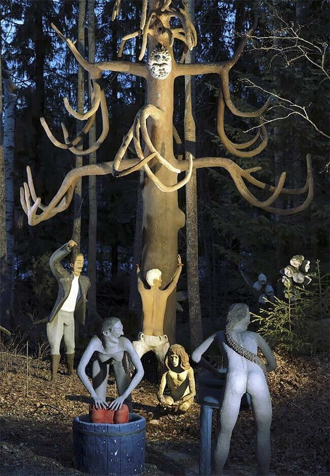 Кстати, ближе к концу жизни, когда парк Вейо получил известность и туда начали валом валить туристы, зубы для человечков ему начали присылать со всех концов страны. Все хотели поддержать необычного финна, который реально мог прославить страну на весь мир.Так на участке в 50 соток выросло 476 фигур людей, не совсем людей и даже совсем не людей. В парке можно найти: