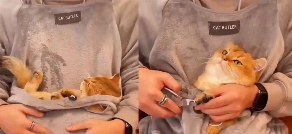 В таком фартуке удобно ходить по квартире вместе с котом, лежать на диване, смотреть телевизор или читать книгу.Кроме того, конструкция помогает в уходе за питомцем - котика можно посадить в карман, чтобы спокойно подстричь ему когти или расчесать шерсть, пока он чувствует себя в безопасности.