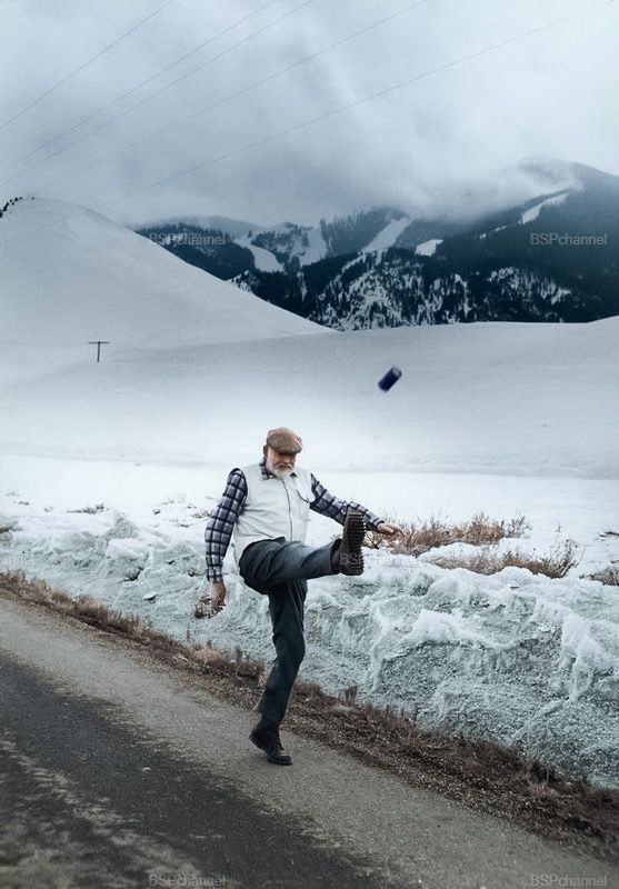 Эрнест Хемингуэй пинает пивную банку. США, Айдахо, 1 февраля 1959 года.