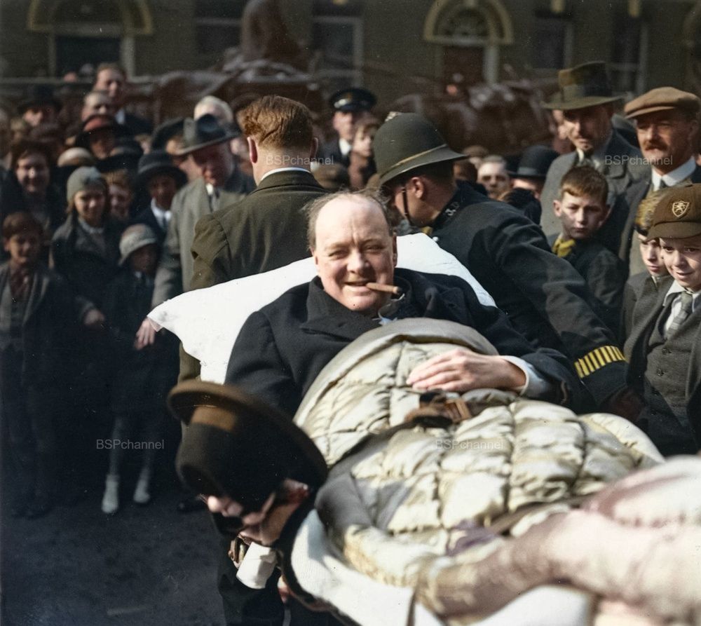 Уинстона Черчилля несут на носилках из больницы в Вест-Энде после приступа паратифа. Лондон, 1932 год.