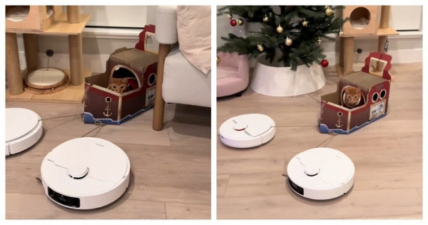 Роботы-пылесосы везут кота