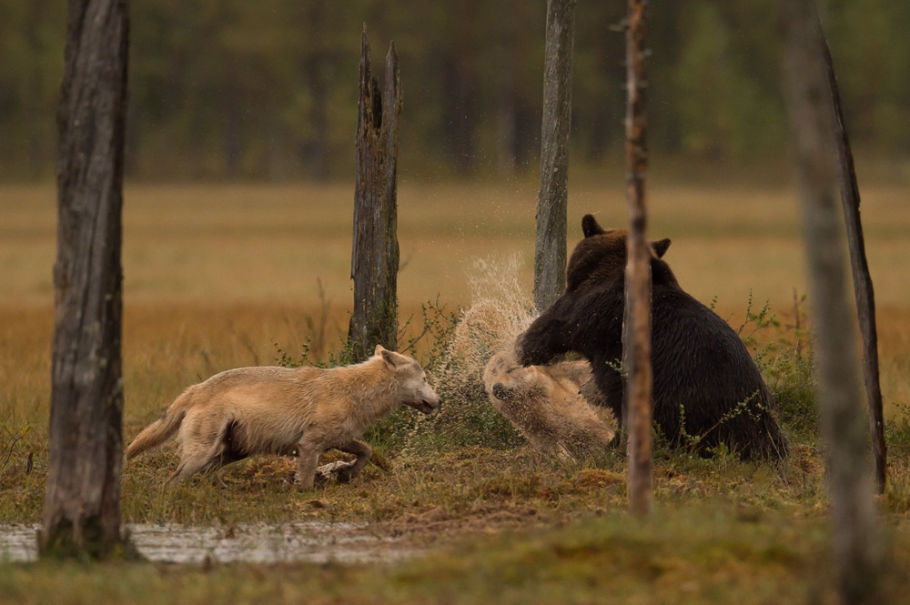 Волки же потребляют куда больше мяса, и для успешной охоты им нужен другой рельеф: редкий лес без подроста, большие открытые поля, а также овраги и холмы, где так удобно загонять дичь. К тому же медведи по 4-6 месяцев проводят в спячке, а в это время их днём с огнём не сыщешь!