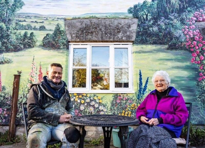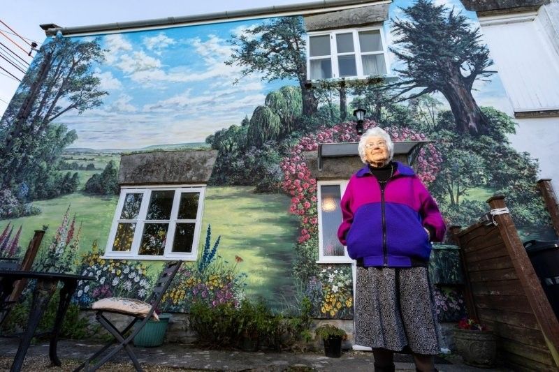 Мюриэл Бейкер выросла в сельской местности и всегда была близка к природе. В свои 94 года она решила создать "сад мечты" прямо у себя дома. Прабабушка украсила одну из стен огромной фреской, чтобы наслаждаться красотой, не прилагая физических усилий.