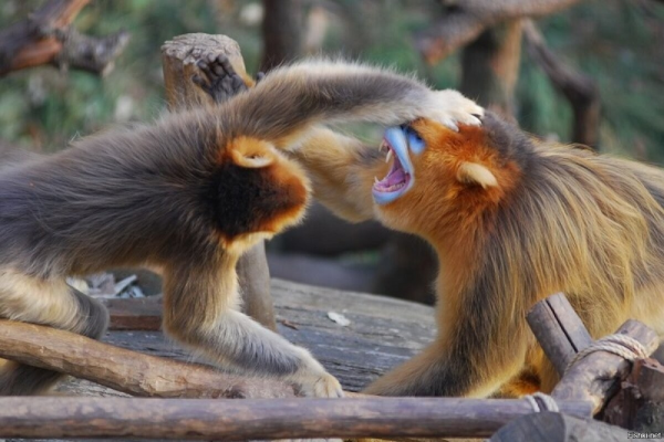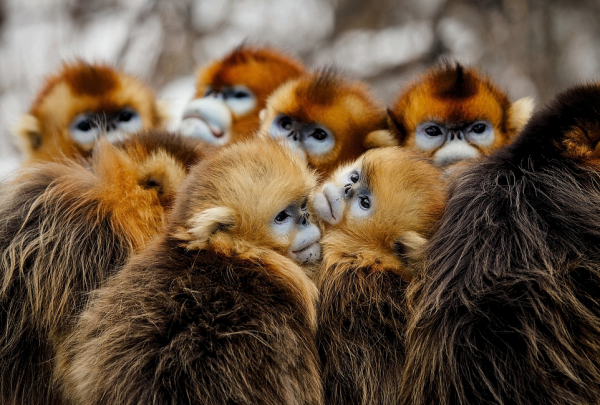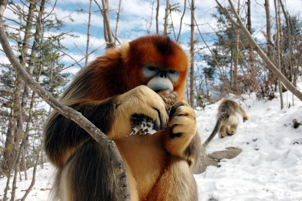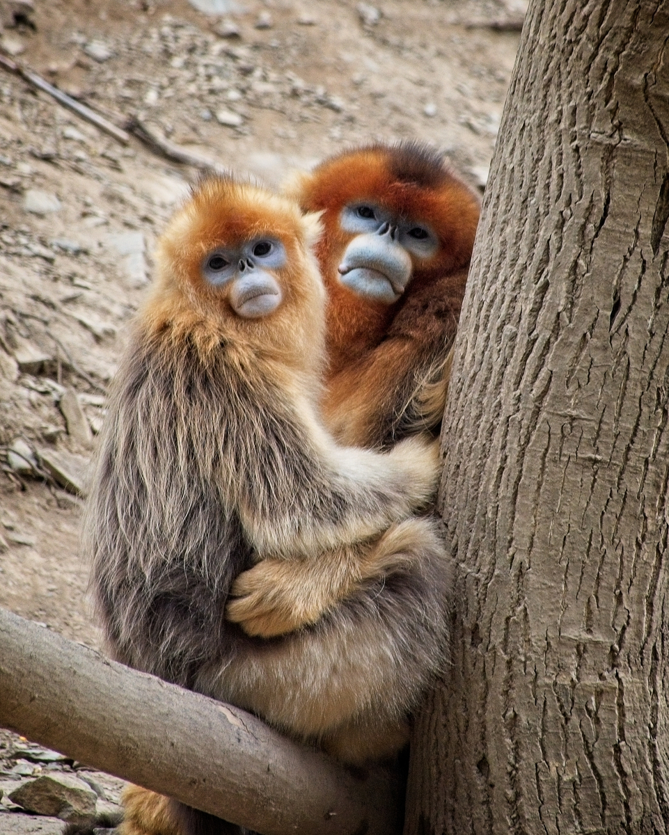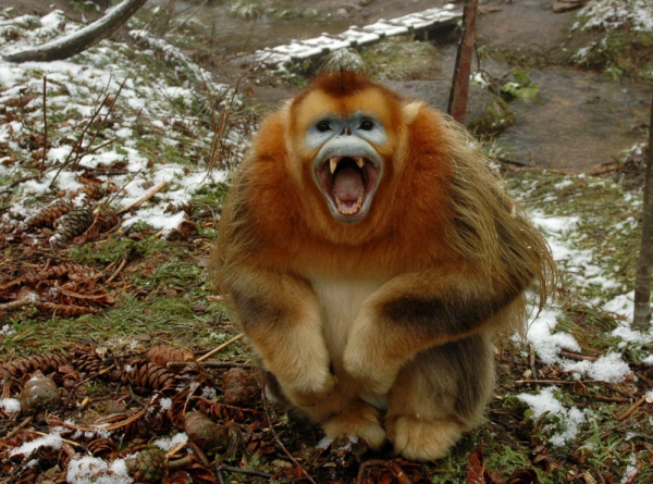 Вселенская тоска во взоре и опущенные книзу уголки рта. Замерзшие, будто бы от холода, синие мордашки. Золотистая курносая обезьяна выглядит как бедный родственник. А как по другому, если ты живешь в горных лесах Китая на высоте от 1500 до 3500 тысяч метров при среднегодовой температуре в 7 градусов?