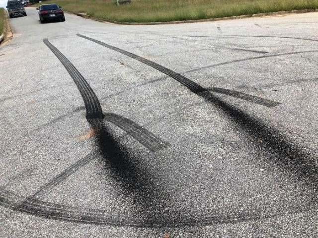 Марти Макфлай, это ты?Глядя на этот асфальт, остается только гадать, куда же делся автомобиль. Ехал-ехал, и вдруг - бац! - следы обрываются, будто машина растворилась в воздухе. Либо водитель разогнался так сильно, что отправился прямиком в 2050 год, либо он просто устал от ям на дорогах и решил переключиться на авиарежим. Наглядный пример того, на что способны люди, когда очень сильно опаздывают к ужину!