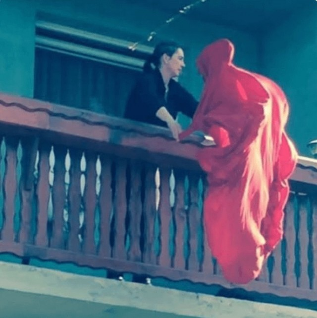 Побег Красной Шапочки или просто большая стирка?На первый взгляд кажется, что мы стали свидетелями драматической сцены из фэнтези: то ли супергерой в красном плаще готовится к взлету, то ли очень упитанное привидение решило сбежать через балкон. Но если протереть глаза и присмотреться, всё гораздо прозаичнее - кто-то просто решил проветрить простыню. Хотя, согласитесь, выглядит эпично, будто простыня решила начать самостоятельную жизнь!