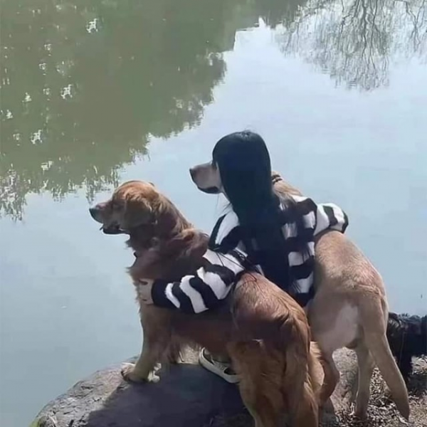 Командный дух: Мы - банда в полосатых свитерах!Вы только посмотрите, какая сплоченная команда! Сразу видно, кто здесь лидер стаи и главный заводила. Настолько хорошо синхронизированы, что на первый взгляд кажется, будто они собираются в одного многоголового, но очень дружелюбного зверя. Главное - чтобы при виде утки все трое не погнались за ней разом!