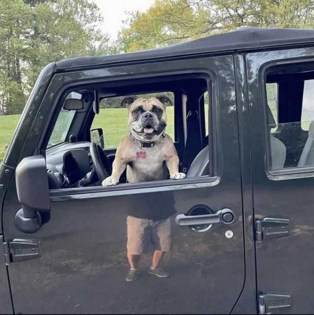 Когда ну очень хотел велосипед, но хозяин зажал деньгиПриходится выкручиваться подручными средствами! Вы только посмотрите на это идеальное попадание в "седло" и на "педали". Взгляд пса полон решимости: сейчас он докажет всему миру, что четыре лапы плюс два нарисованных колеса - это страшная сила! Эх, прокачу!