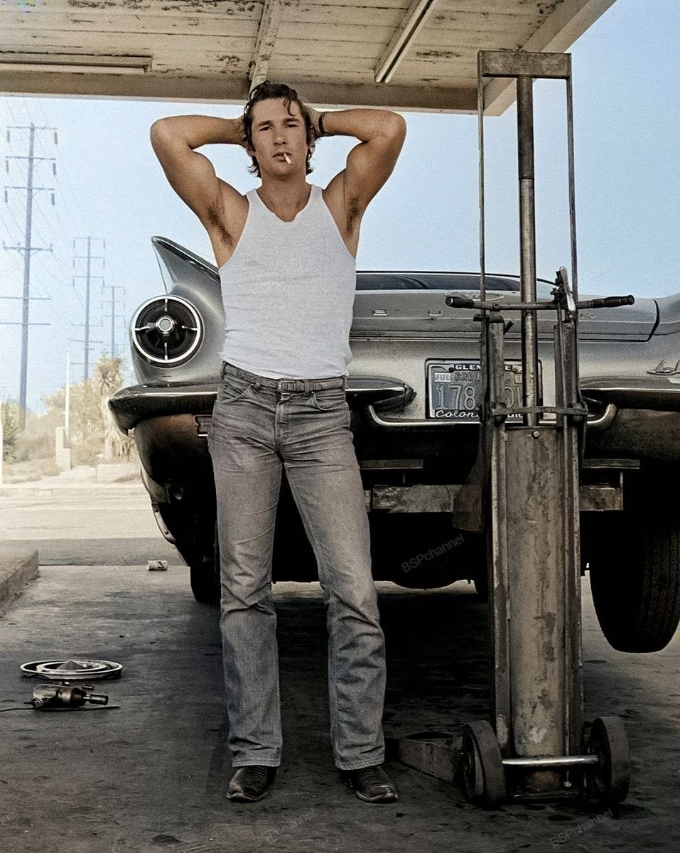 Тот, кто сделал это кадр, а именно Герб Ритц прославился своими яркими портретами американских знаменитостей - но начал всё с одного рокового знакомства. Его первым "звездным" героем стал Ричард Гир, тогда ещё совершенно неизвестный актёр. Встретились они случайно на заправке. Фотограф предложил Гиру поучаствовать в импровизированной съёмке, и тот согласился. Этот кадр оказался судьбоносным для обоих: Герб получил свой первый серьёзный гонорар, а агенты Ричарда начали рассылать именно эти фотографии потенциальным заказчикам, что вскоре принесло ему множество выгодных предложений. Так один спонтанный момент на бензоколонке открыл дверь в большую славу и для модели, и для фотографа.