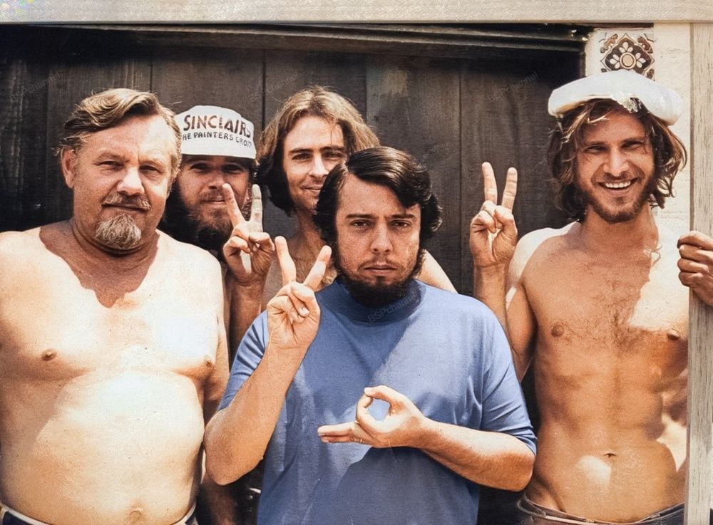 Харрисон Форд (крайний справа) подрабатывает плотником, 1970-е.