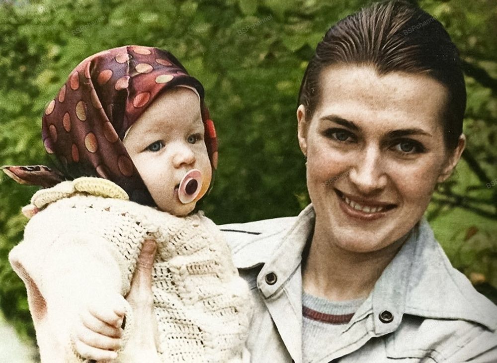 Девочка Мила (в будущем Мила Йовович) на руках у матери Галины Логиновой, 1976 год.