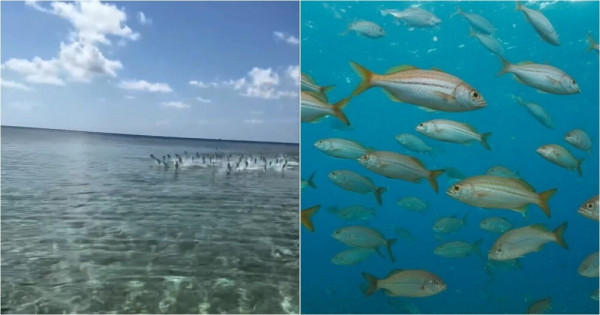 Российская туристка, отдыхавшая на Мальдивах, оказалась в неожиданно пугающей ситуации. По словам девушки, она увидела, как прямо на неё несётся стая рыб, выпрыгивая из воды. Испугавшись происходящего, туристка начала кричать от ужаса. Однако всё обошлось без последствий - косяк внезапно развернулся и уплыл обратно, не причинив девушке вреда.