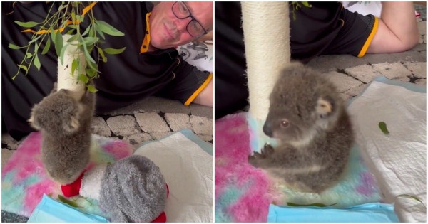 Осиротевшие детеныши коал нуждаются не только в заботе, но и в обучении жизни в дикой природе.Вот так, например, малышей учат лазать по деревьям.