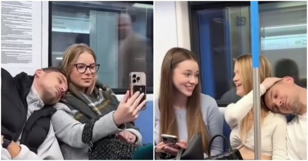 Парень притворялся, будто засыпает на плече у незнакомки, сидящей рядом. Большинство девушек не спешили будить "уснувшего" соседа.