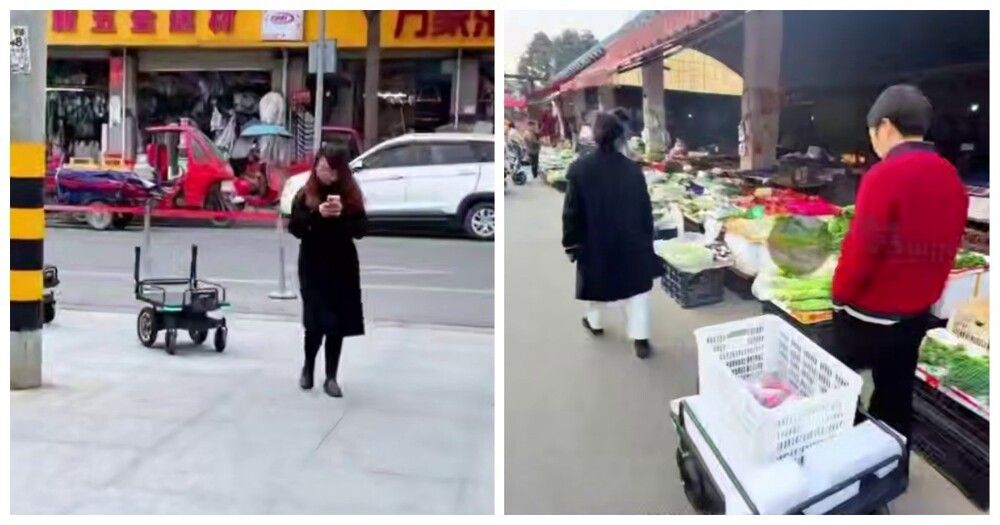 Китайский стартап из провинции Сычуань выпускает умные корзинки для покупок, которые следуют за владельцем.