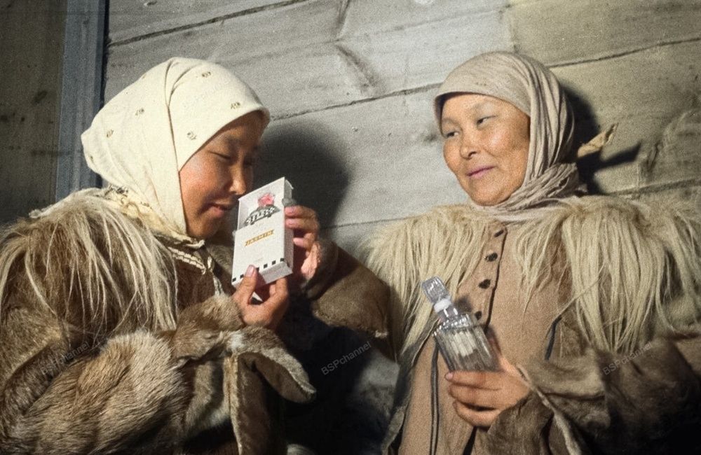 Эвенские женщины покупают духи, 1938 год.