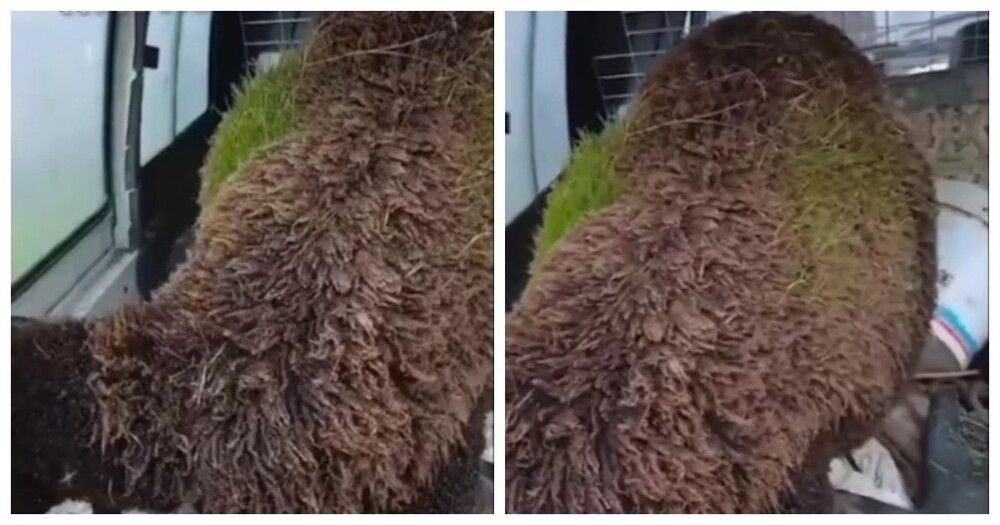 Пастух из Испании показал одну из своих овец. На шерсти животного выросла трава.