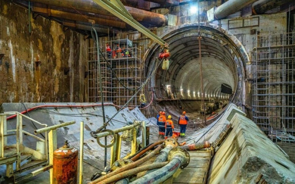 Проходка подводных тоннелей ведется в водоупорном слое глины. С одной стороны, этот плотный грунт слабо пропускает воду, что снижает риски затопления. Но с другой - ощутимо возрастает нагрузка на технику. Потому перед началом проходки под водой обязательно делается технологическая пауза для проверки режущих инструментов и замены изношенных элементов.