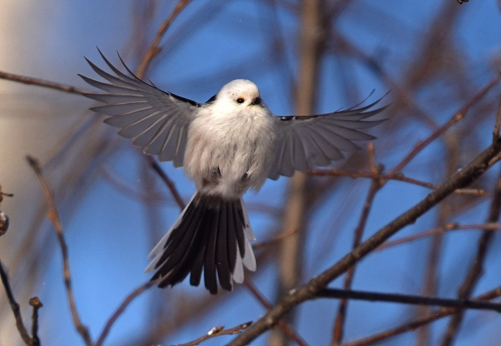 Эта крошечная птичка по размеру меньше воробушка: вес - 6-10 г максимальная длина - 16 см. Но каждый сантиметр - концентрация очарования. Только посмотрите на округлые формы! На эти глазки-бусинки! В XIX веке длиннохвостая синица пользовалась у любителей пернатых большой популярностью и считалась самой красивой среди мелких птиц, за что получила название аполлоновка. За преимущественно светлый окрас синичку еще называют снежной. А за форму пушистого черпачка с длинной ручкой - ополовником. В общем, названий - на любой вкус.