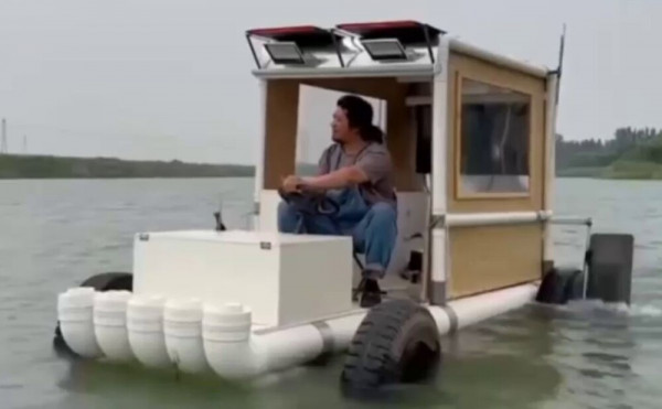 Житель Китая показал рыбалкомобиль. В ожидании клева в нём можно перекусить, поиграть в любимые игры на приставке и даже вздремнуть.