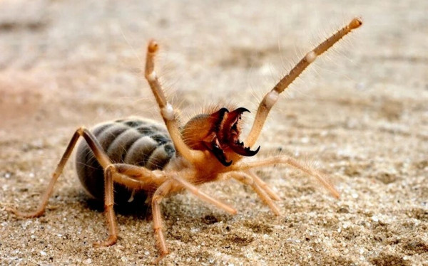 Сольпуги, или, как их еще называют, фаланги, составляют отдельный отряд среди паукообразных. Они живут в пустынных и засушливых районах разных континентов и охотятся на всё, что могут догнать и одолеть. В поединке со скорпионом такого же размера, победителем, как правило, выходит сольпуга.