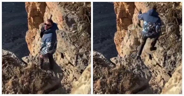 Альпинист решил устроить романтическое свидание для своей девушки - тоже коллеги по скалолазанию. Идея заключалась в том, чтобы повесить гамак через пропасть и вместе наслаждаться красивым видом.
